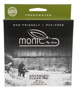 All Advanced Clear Plus lines are weighted on the heavy side of the true AFFTA standards. You can see the weight ranges in the chart pictured here (weights are measured from the first 30 ft of the head). Many fly lines in today’s market are vastly over-weighted, sometimes up to 3 sizes. At Monic, we understand that not every angler is using a fast action rod or wants an ultra-heavy fly line forced into their hands. That is why we want to leave the decision up to you. After all, nobody knows your rod and fishing style better than you do.
