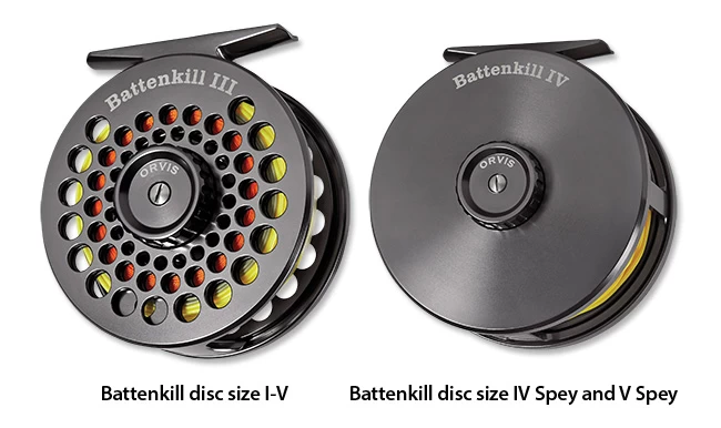De Orvis Battenkill Disc Fly Reel en de los verkrijgbare reservespoelen zijn beschikbaar in diverse formaten.